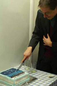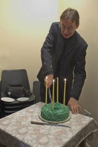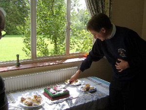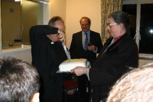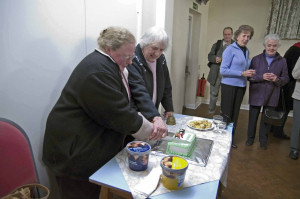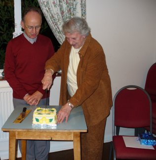 Fr. Hugh was presented with "A Big Red Book" containing photographs of significant events during his Ministry in Merstham, a pair of candle trees (wrought iron tea-light holders which were standing either side of the altar during the Mass) and a cheque for almost £1,000. The Celebration concluded with wine, refreshments and cake in the Community Room.