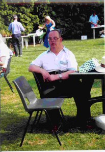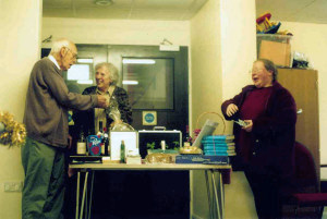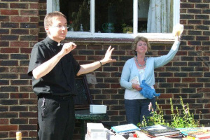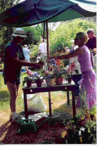 Joe Moody takes a break | Fr. Hugh & Pamela Schwenk share a joke | Plant sales stall | Tea time |