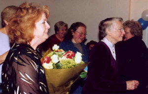 News from St. Teresa's For the third time this year a surprise party took place in our Community Room to celebrate the birthday of an octogenarian - on this occasion for Mary Rayner. (Judging by her appearance and energy many of us secretly suspect she is twenty years younger and forged her birth certificate to collect an early pension!!!). Mary contributes to parish life in many ways, but her chief talents are in creating beautiful floral arrangements and generous giving of friendship. During the evening Fr. Hugh presented Mary with a new Daily Missal, her existing one having shown all the signs of years of use.