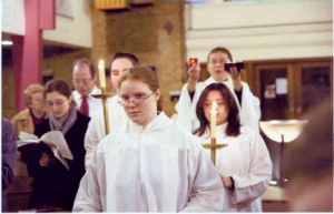 In June 2004 the Bishop of Arundel and Brighton came to St. Teresa's to confirm candidates from Merstham, Reigate & Redhill. |