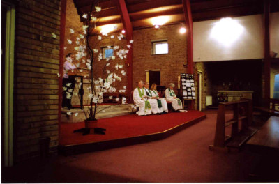 A Mass of Thanksgiving for the work of Fr. Hugh Flower during just under 12 years at Parish Priest at St. Teresa's was celebrated on 9th January. Mr. Ken Longley led the tributes to his many achievements; the rewiring of the church and installation of new heating and lighting, the siting of the Font, the creation of the Community Room with the help of a grant from The Lottery and The Merstham Millennium Fund and, of course, the making of the splendid garden.