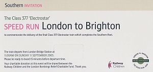 Southern on Sunday. The company laid on a special speed run from London Bridge to Brighton which produced the fastest journey time between the two cities - 36 mins 56 secs - and marked the official end of slam door trains on its services in London, including Croydon and Sutton, and the south coast. Hundreds of pounds were also raised by guests on the train for the