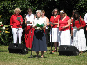 The Bishop of Croydon, Nick Baines, spoke at the Celebration Service held on the Memorial Green opposite All Saints Church in South Merstham. The Festival Choir led the worship |